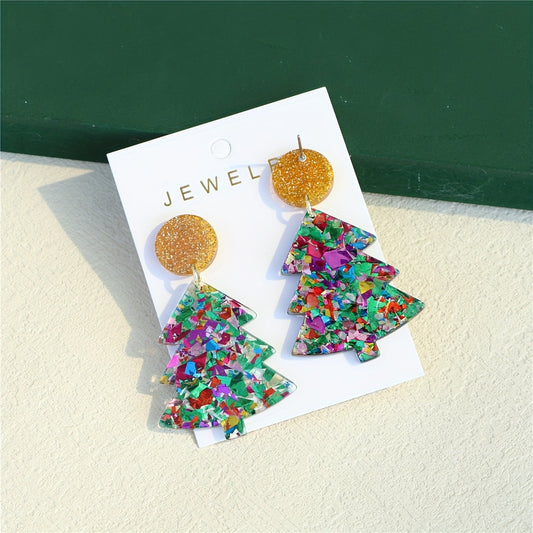 Christmas Tree Colorful Sequins Decor Dangle Earrings Cute Cartoon Style Acrylic Jewelry Classic Christmas Eve Gift